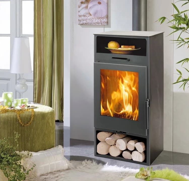 Печь-камин Panadero Nijar - элегантная печь со стальным корпусом и с нишей для разогрева еды.
