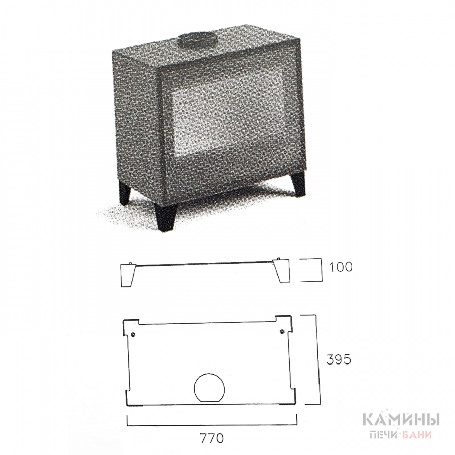 Печь камин LL Calor ATRIA 80 + T — печь из стали и вермикулита без вентиляционного комплекта, с трубой, которая включает в себя: