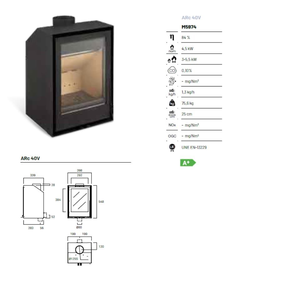Есть возможность подачи воздуха извне.Rocal Arc 40V обладает высокими отопительными свойствами, выдавая большой объем тепла при малом количестве дров.