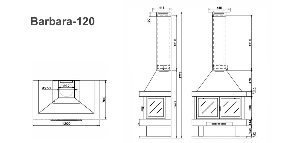 Готовый стальной камин ROCAL Barbara 120 испанского производства с трехсторонним остеклением - это элегантное и стильное решение для современного интерьера.