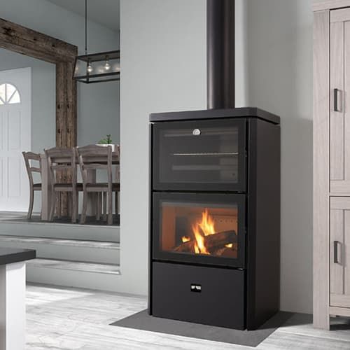 Печь-камин Rocal Hebar - это современная модель, выполненная из высококачественной жаропрочной стали и оснащенная духовкой и грилем.