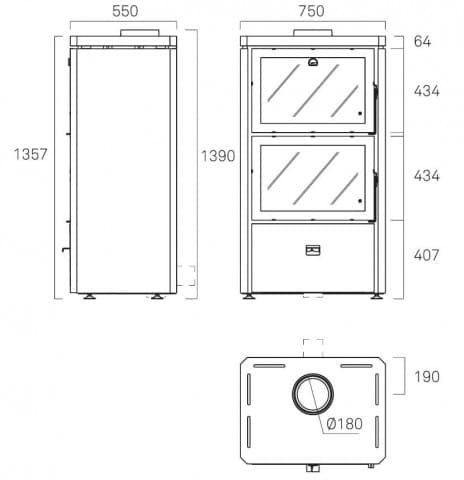 Также модель оснащена удобной и вместительной дровницей, расположенной под топкой, и выдвижным зольным ящиком, значительно упрощающим процесс ухода за печью.
