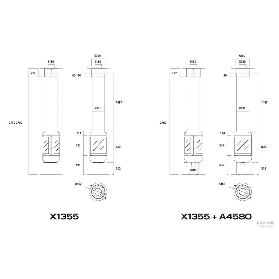 | Диаметр дымохода | 180 мм |