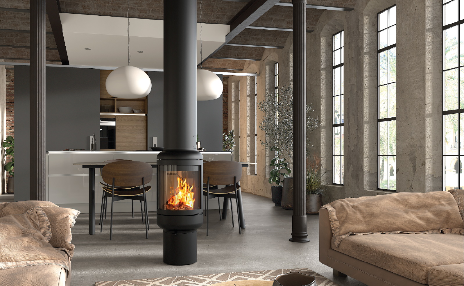 Уникальный центральный камин Rocal Vesta Central + C сочетает в себе минималистичный дизайн и функциональность. Благодаря круглой форме и прозрачным стеклянным стенкам, огонь виден со всех сторон, создавая атмосферу уюта и тепла в любой точке помещения. Идеально подходит для современных интерьеров, где важна не только практичность, но и эстетика.