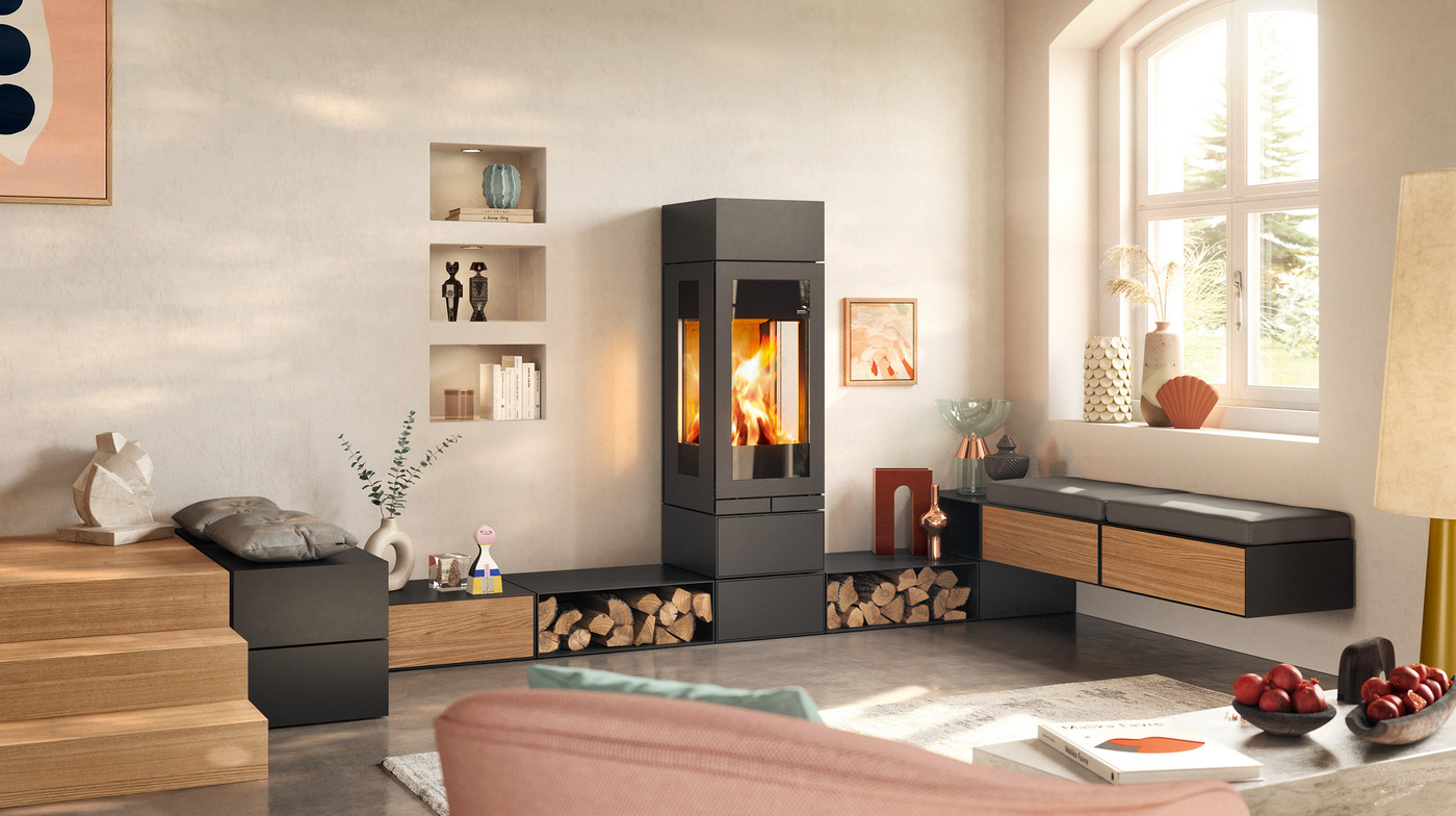 Вы можете интегрировать дополнительный модуль хранения для более длительного рассеивания тепла. Варианты длины элемента хранения составляют 40,0/60,3 см, и дополнительная дверь (из стали) или ящик (с фасадом из стали или массива дуба) могут быть внедрены в зависимости от ваших предпочтений.