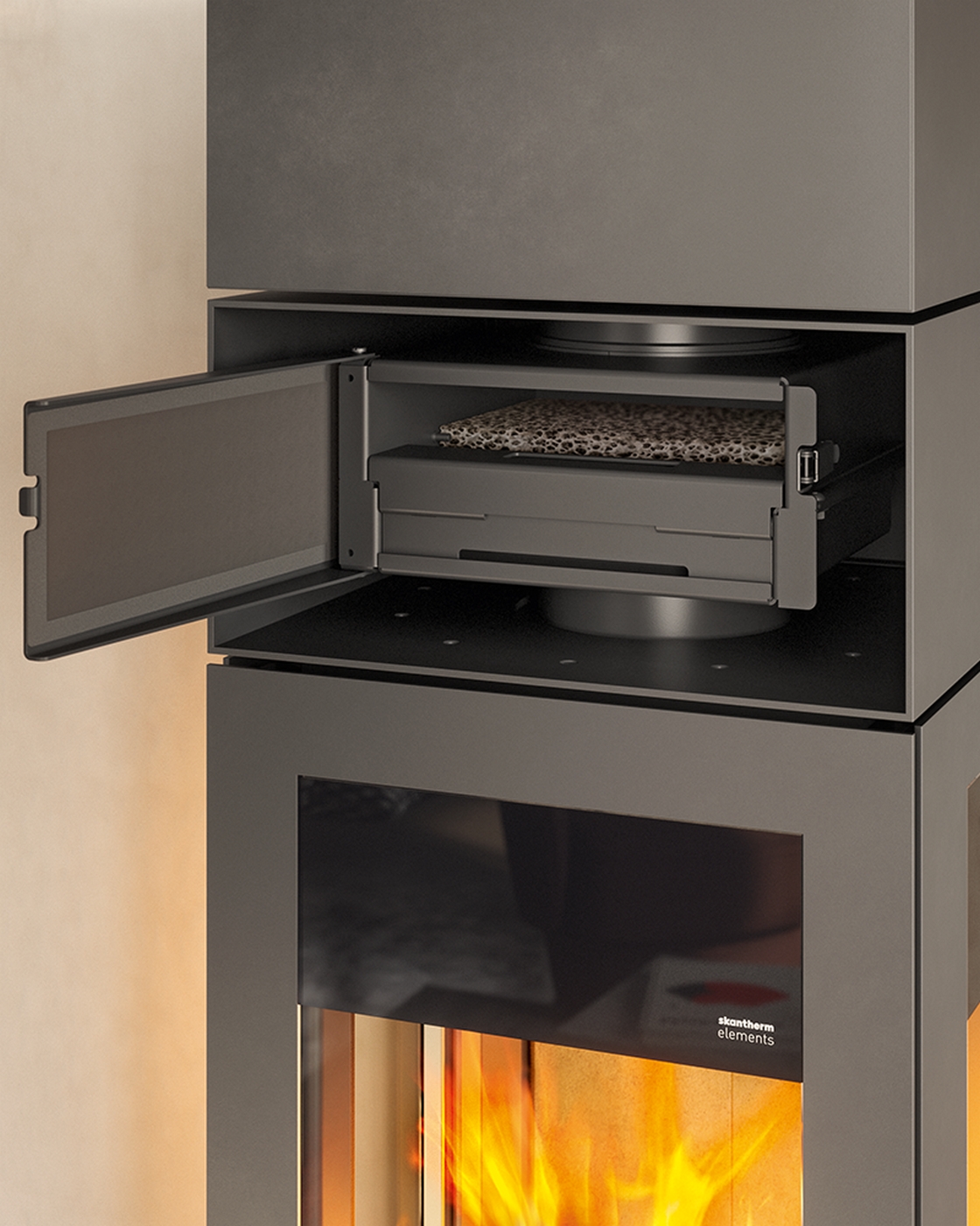 Вы можете интегрировать дополнительный модуль хранения для более длительного рассеивания тепла. Варианты длины элемента хранения составляют 40,0/60,3 см, и дополнительная дверь (из стали) или ящик (с фасадом из стали или массива дуба) могут быть внедрены в зависимости от ваших предпочтений.