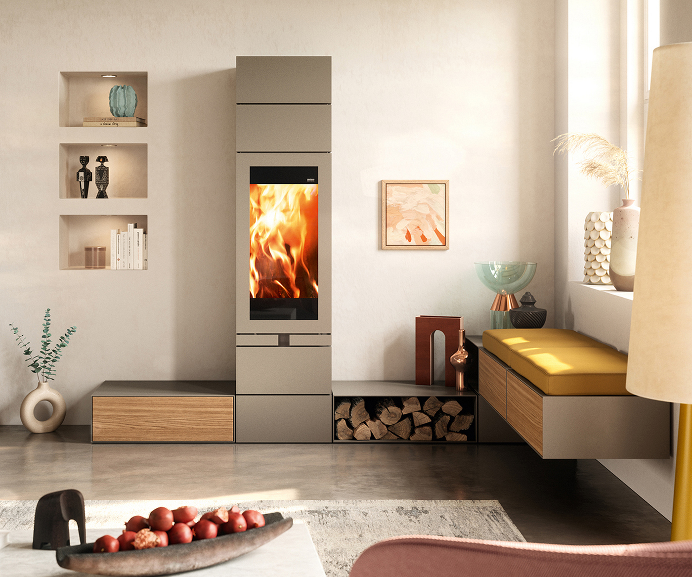Печь-камин Skantherm Elements 400 Front 2.0 в интерьере