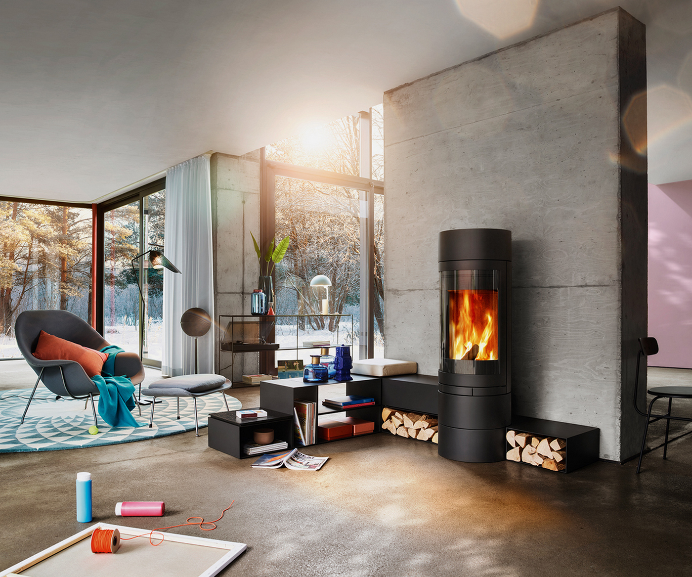 Печь-камин Skantherm Elements Rund 2.0 в интерьере