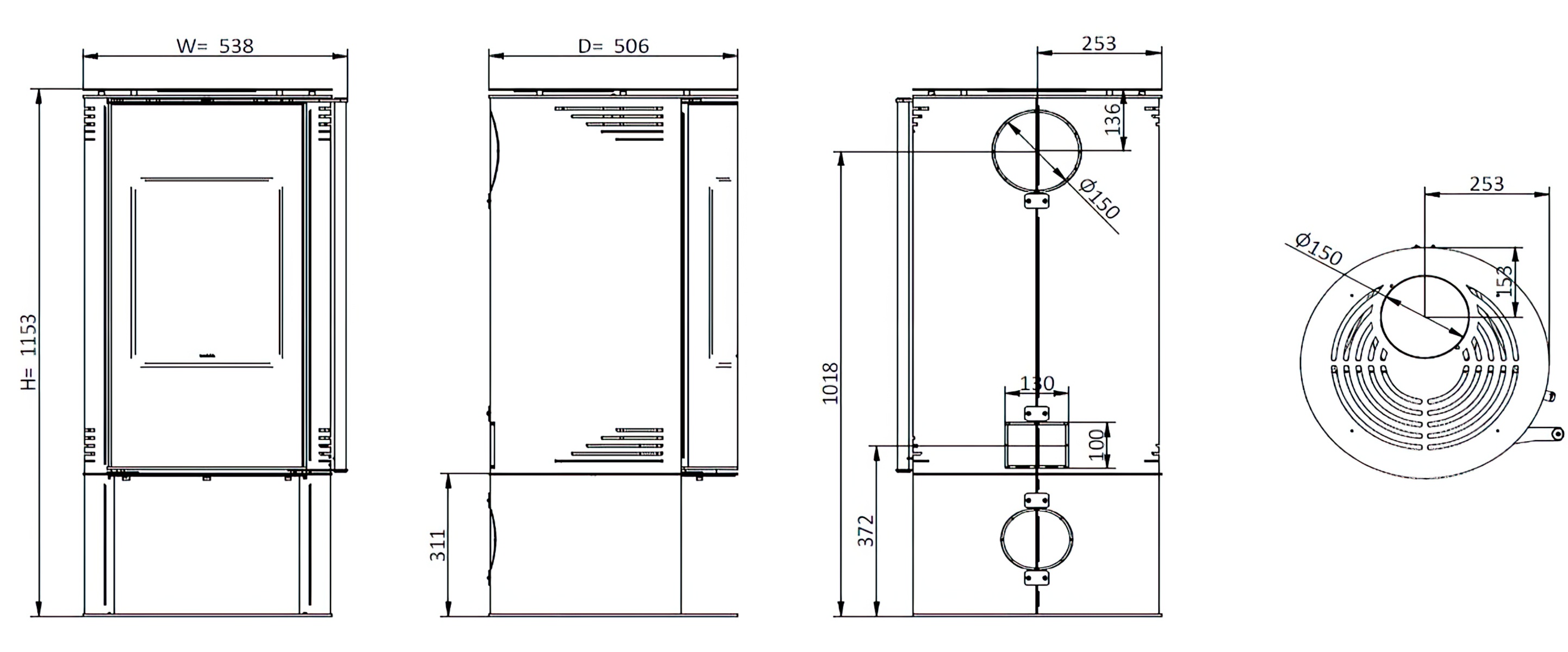Диаметр дымохода: 150 мм.