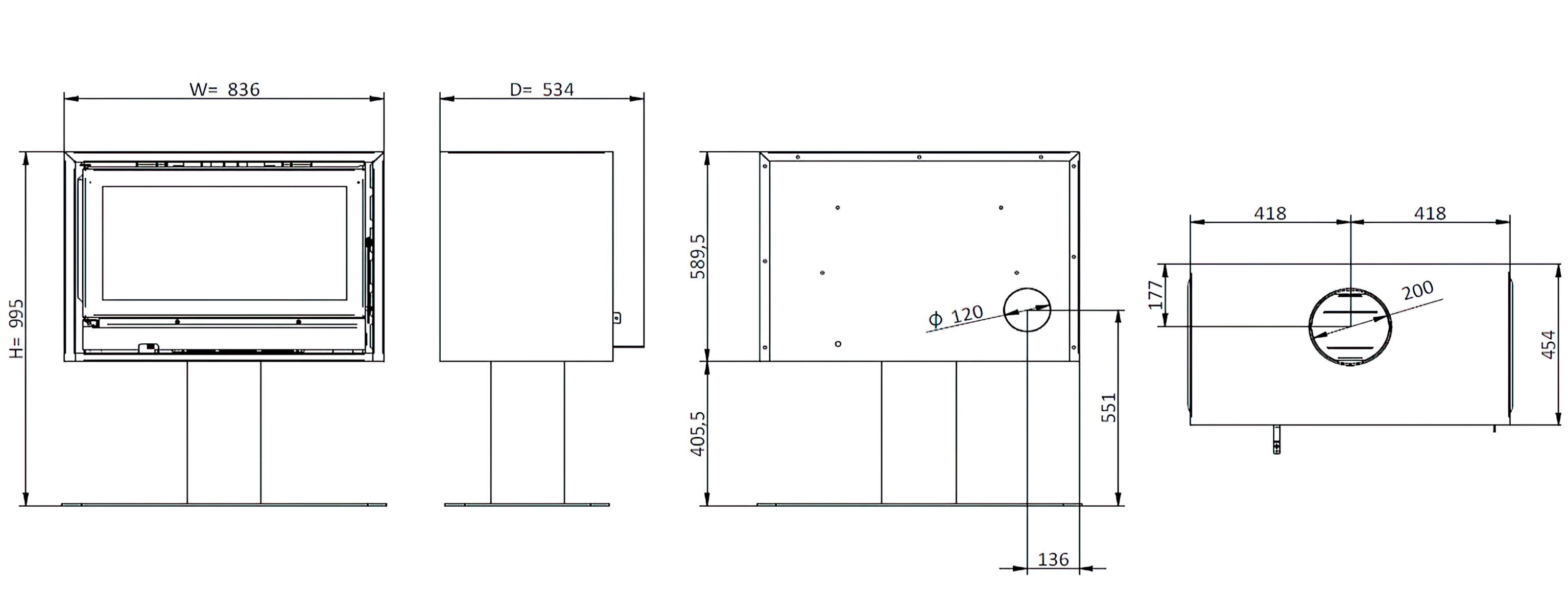 Камин изготовлен из жаростойкой стали толщиной 5 мм в соответствии с европейскими стандартами качества, а в качестве облицовки используется высококачественный листовой металл, отличающийся хорошей теплопроводностью и минималистической простотой.
