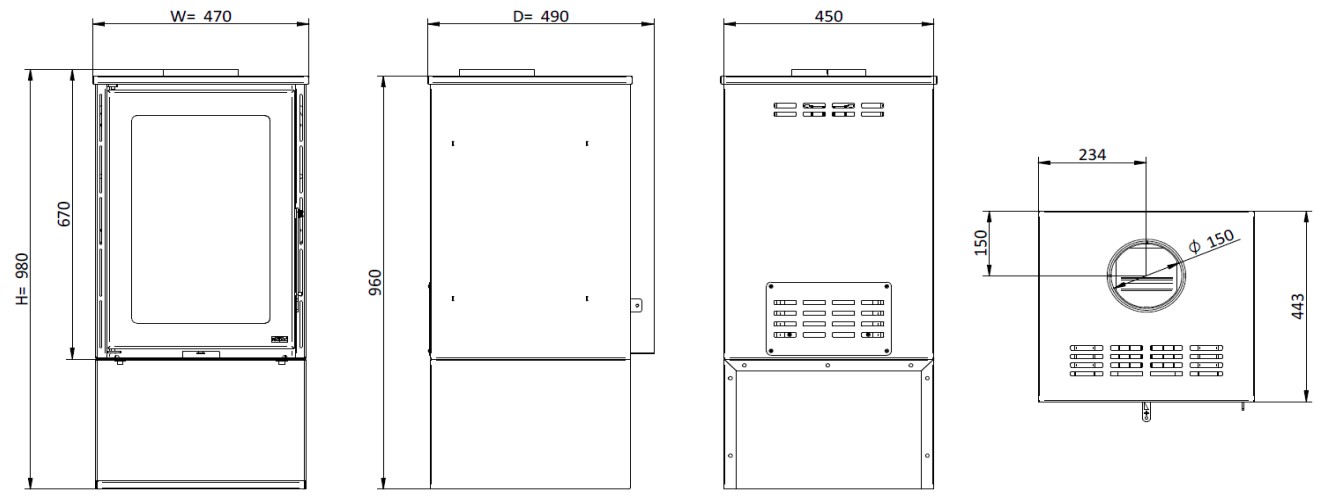 Coura (Red Pod) - стальная дровяная печь мощностью 6.7 кВт. Она проста в установке и не требует какой-либо отделки.