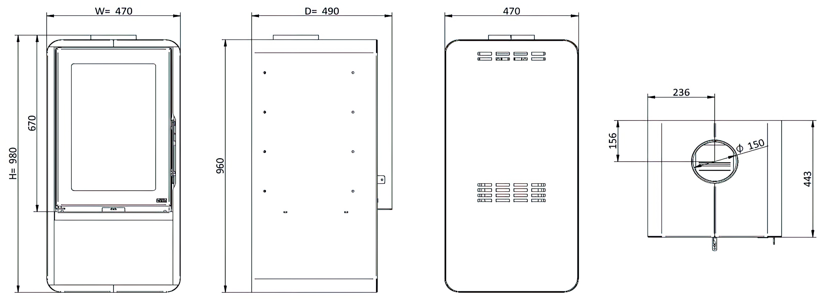 Insua (Red Pod) - стальная дровяная печь мощностью 6.7 кВт. Она проста в установке и не требует какой-либо отделки.