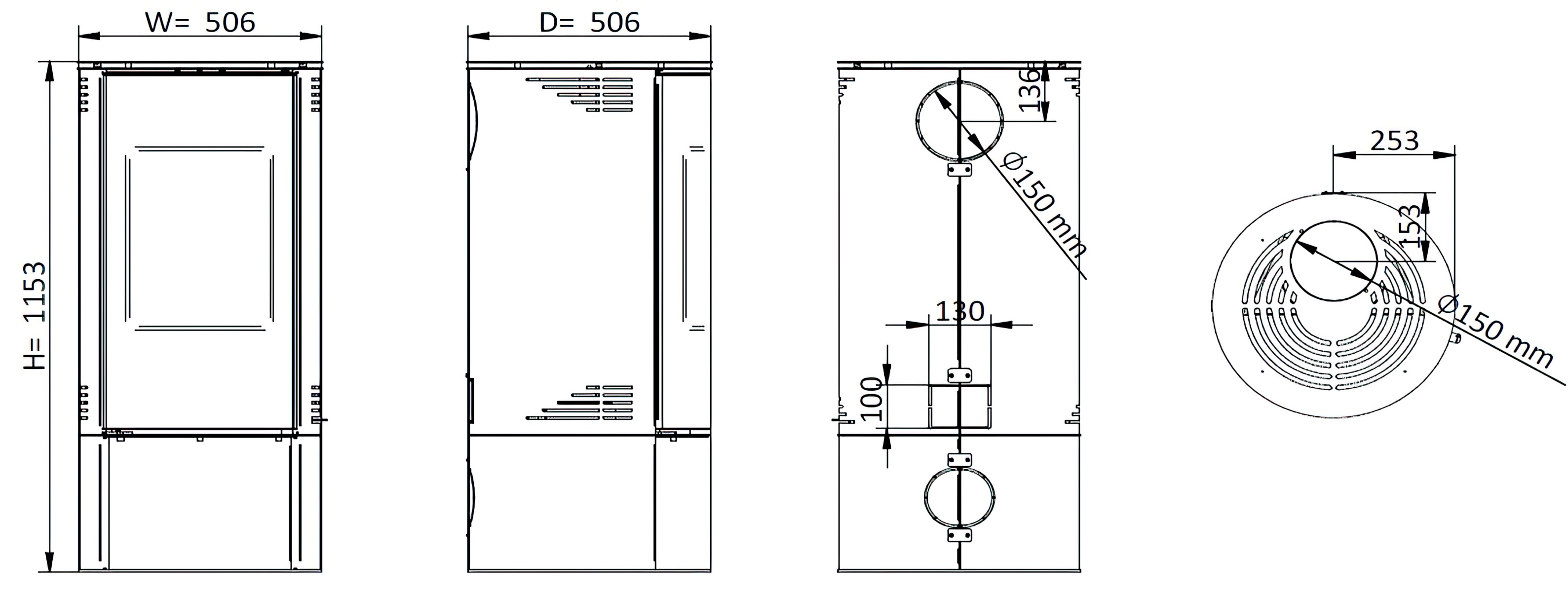 Размеры В×Ш×Г: 1153×506×506 мм.
