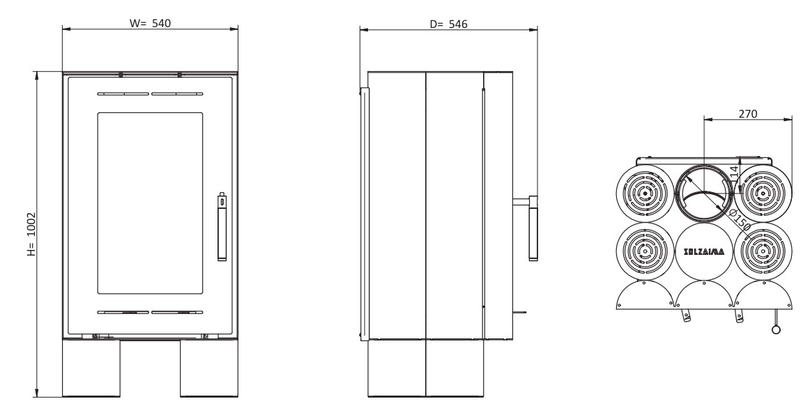 Диаметр дымохода: 150 мм.