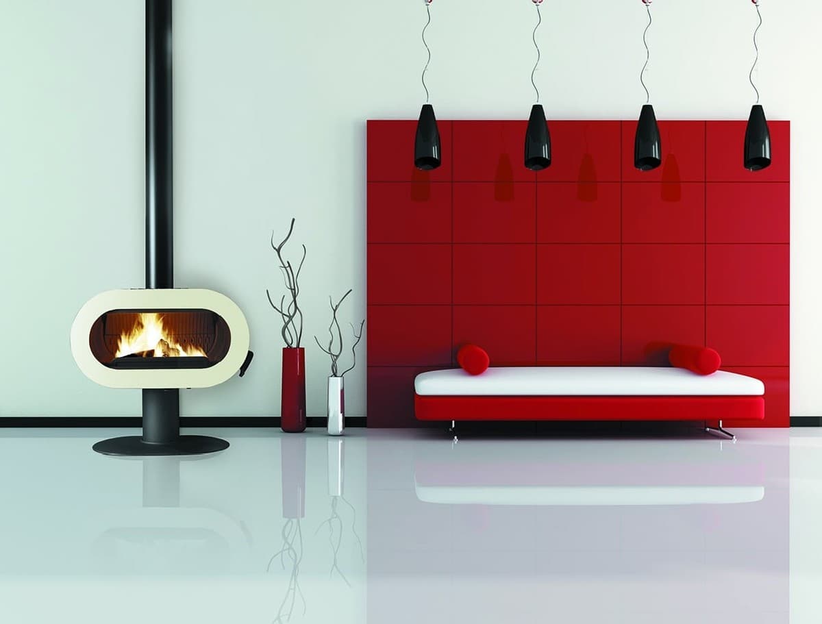 Печь-камин Fifty бежевая эмаль в интерьере: