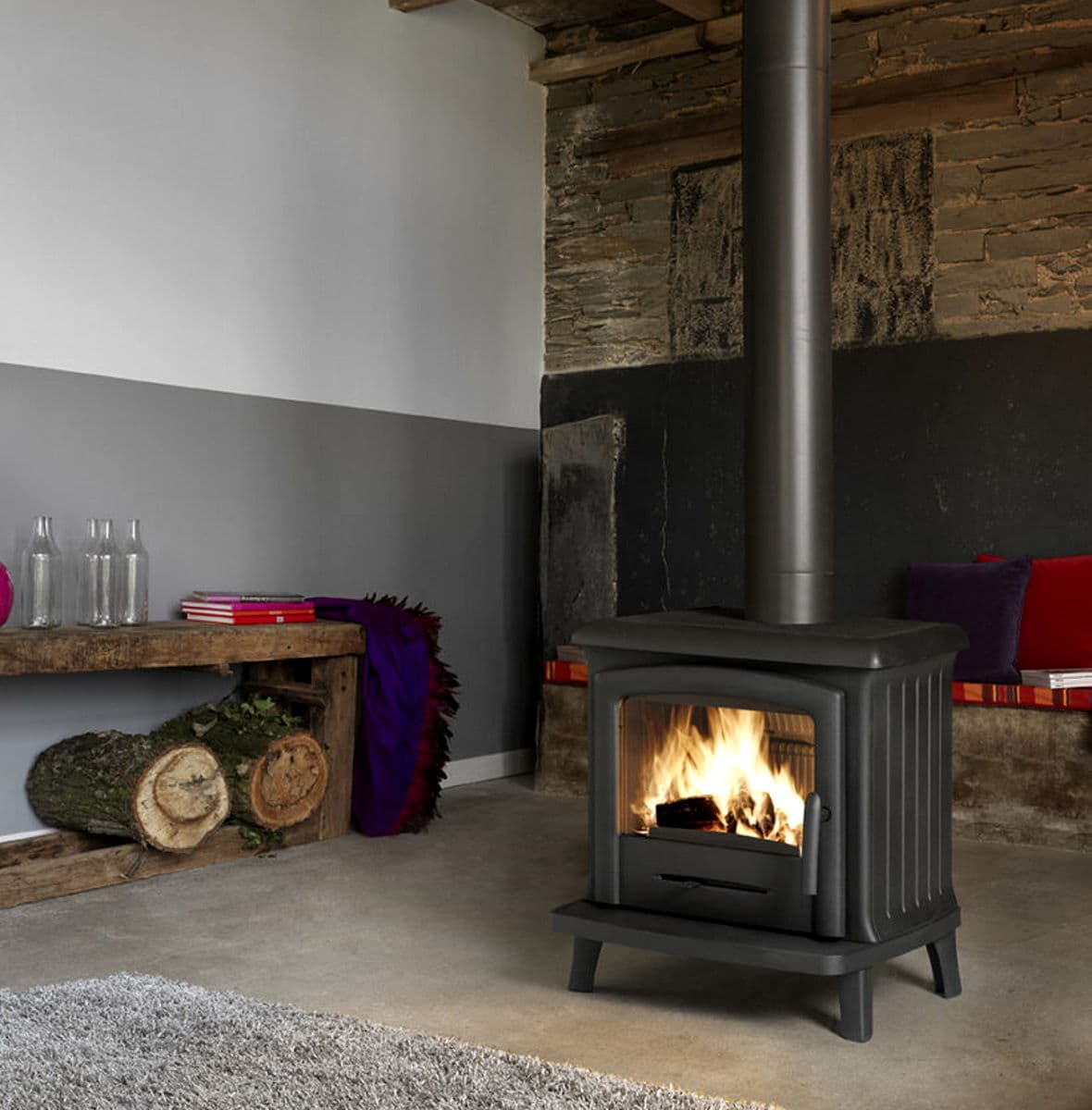 - Печь-камин работает на небольшом количестве топлива с гарантировано высоким достижением КПД не менее 70%.