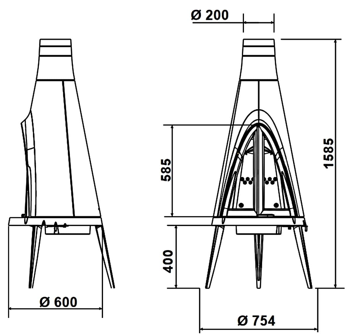 Invicta Tipi - это печь-камин, сделанный из чугуна и напоминающий корабль в космосе или жилище индейцев. Оформление печи разработано в этическом стиле. Может работать с открытой дверцей, что позволяет еще больше наслаждаться видом огня.