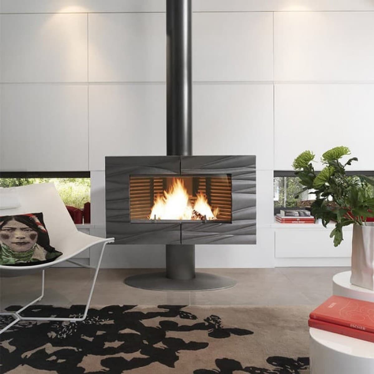 Invicta Symphonia - это самая оригинальная модель в последней серии каминных печей от французских производителей. Такой камин, конечно, в большей мере выполняет декоративную функцию благодаря своему оригинальному и изысканному дизайну. Необыкновенный узор вокруг каминной топки подчеркивает строгость и изящность. Однако, не смотря на свои декоративные функции, каминная печь отлично выполнять и функцию отопительного устройства. Ведь благодаря соответствующей мощности, помещение отапливается полностью и без необходимости использования других отопительных аппаратов. Для топлива рекомендуют использовать дрова средних размеров, закладка которых происходит сбоку. Стандартной закладки дров хватает на 10 часов беспрерывной работы камина. Такой камин можно использовать как для дополнения интерьера Вашего дома, так и для создания спокойной и теплой обстановки в загородном доме.
