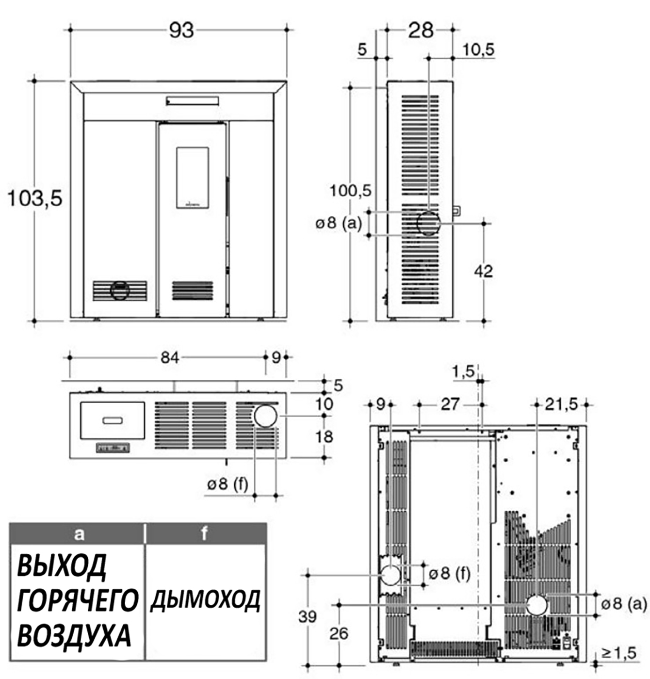 | Расход твердого топлива | 0,98 - 2,02 кг / час |