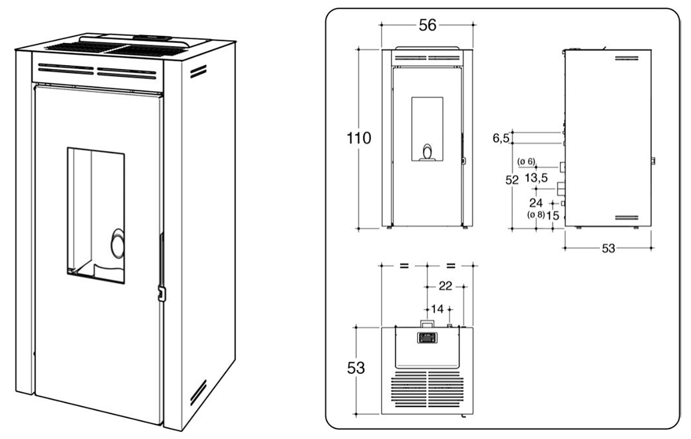 | Расход твердого топлива | 1,64 - 3,78 кг / час |