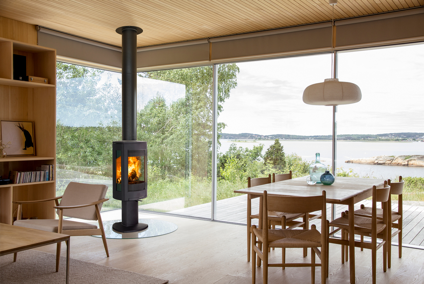 Чугунная печь-камин Jotul F 373, лауреат престижных наград в сфере дизайна, покрыта жаростойким лаком или эмалью черного или белого цвета, мощностью при оптимальном горении до 6 кВт, рассчитана на обогрев помещения площадью до 110 м2, поставляется в комплекте с чугунной колонкой. Jotul F 373 это один из каминов серии F 370, линейка данных моделей составляет 10 продуктов, которые могут удовлетворить различные индивидуальные вкусы пользователя.
