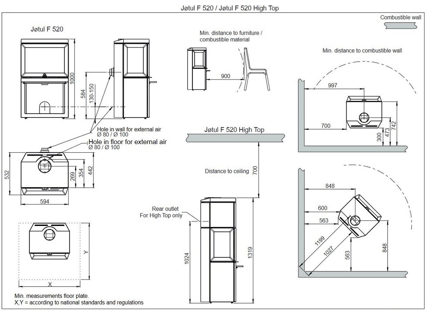 Jotul F 520 помимо того, что имеет современный дизайн, также является технически совершенным продуктом. К примеру, в печи используется бесколосниковая технология сжигания дров. Камера сгорания герметичная, а воздух на горение поступает с улицы. Для эффективного сжигания дров используется технология CB (clean burn). С помощью нее воздух с улицы перед тем, как попасть в камеру, проходит во внутренних полостях печи большой путь, тем самым разогревается и поступает сверху, над дровами. Это позволяет сжигать значительную часть газа, который выделяется при горении топлива. К тому же, к F 520 опционально можно заказать электронный оптимизатор горения Jotul ERS-01.