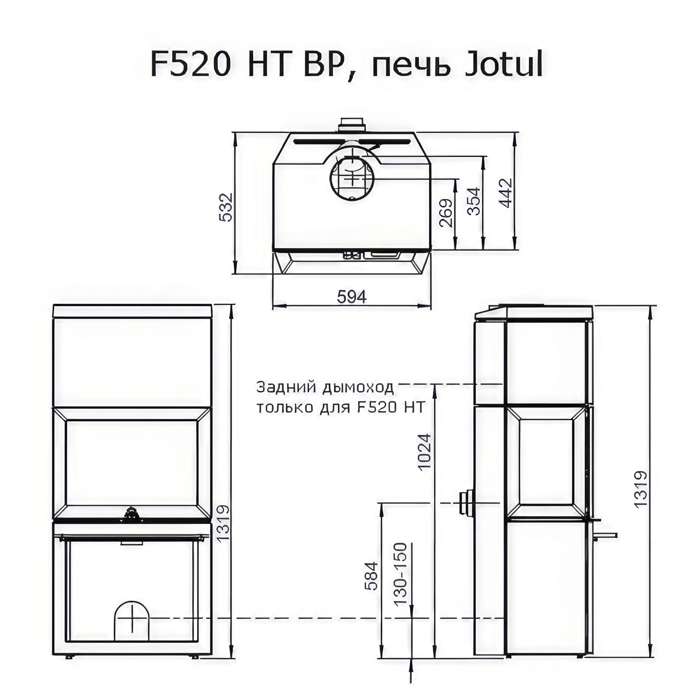 Jotul F 520 HT является технически совершенным продуктом. К примеру, в печи используется бесколосниковая технология сжигания дров. Камера сгорания герметичная, а воздух на горение поступает с улицы. Для эффективного сжигания дров используется технология CB (clean burn). С помощью нее воздух с улицы перед тем, как попасть в камеру, проходит во внутренних полостях печи большой путь, тем самым разогревается и поступает сверху, над дровами. Это позволяет сжигать значительную часть газа, который выделяется при горении топлива. К тому же, к F 520 High Top опционально можно заказать электронный оптимизатор горения Jotul ERS-01.