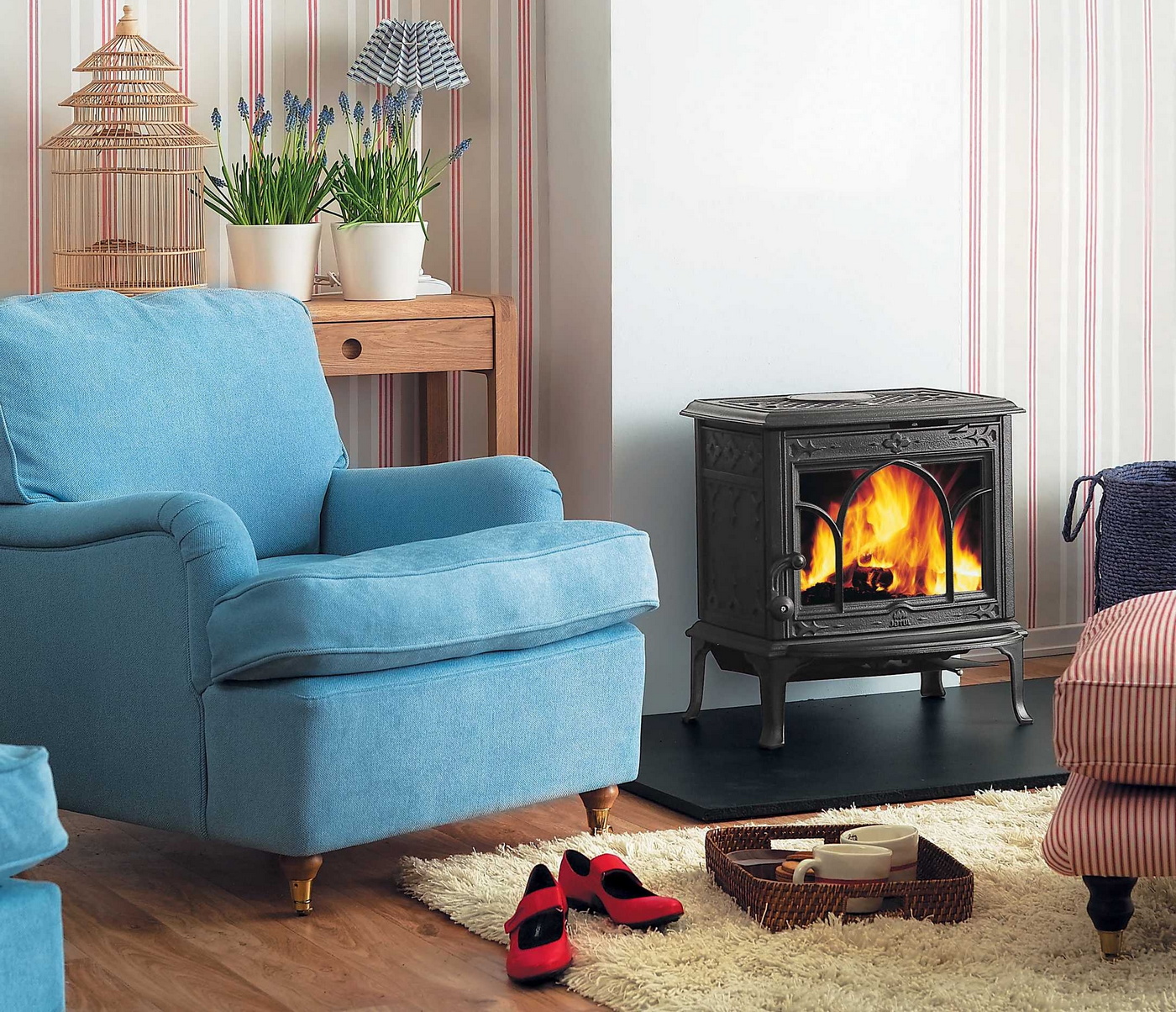 Чугунная печь-камин Jotul F 100 ECO LL BP, окрашена в черный цвет, с функцией чистое горение “Clean Burn”, при среднем уровне обеспечивает 4,9 кВт, рассчитана на обогрев помещений площадью до 90 м2. Печь-камин Jotul F 100 это компактная дровяная печь, которая вмещает в себя дровяные полена длинной до 36 см. У этой модели каминной печи не большой внутренний зольник, что упрощает процесс удаления золы.