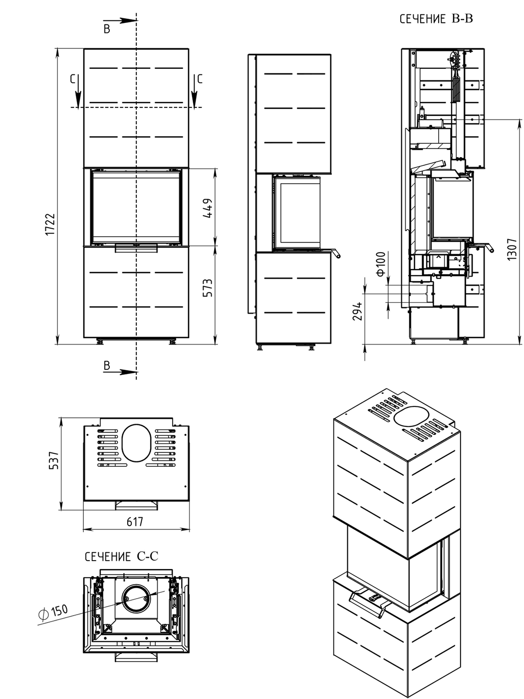 | Размеры (В х Ш х Д) | 1722 мм x 617 мм x 537 мм |
