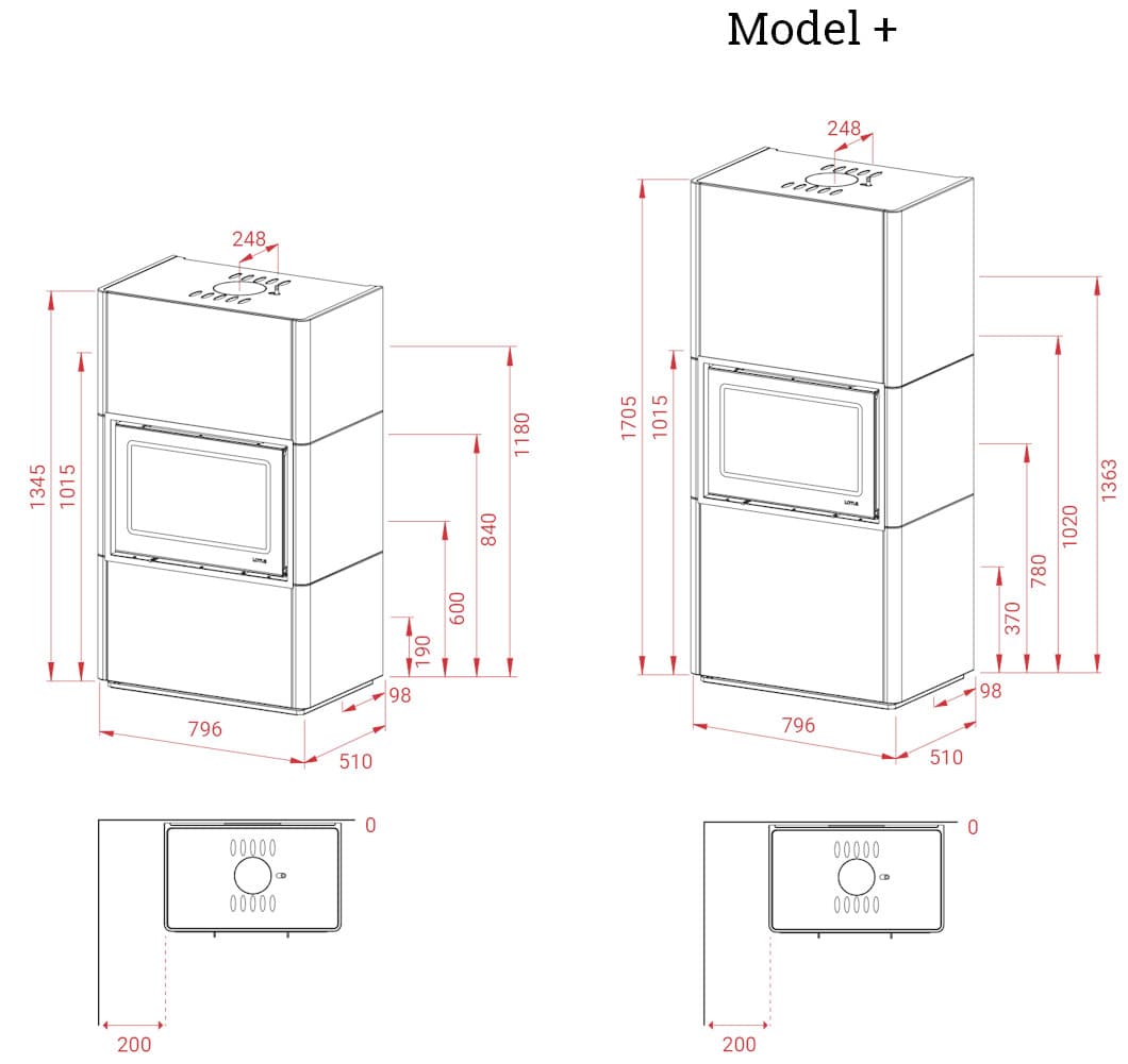 Если вы выберете эту версию Beto, вы можете дополнительно нарастить 40 см в высоту печи за счет дополнительной секции.