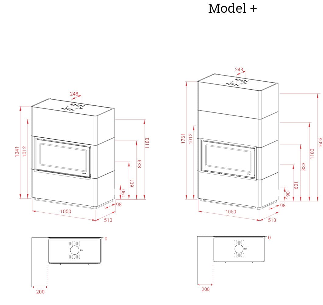 Если вы выберете эту версию Beto, вы можете дополнительно нарастить 40 см в высоту печи за счет дополнительной секции.