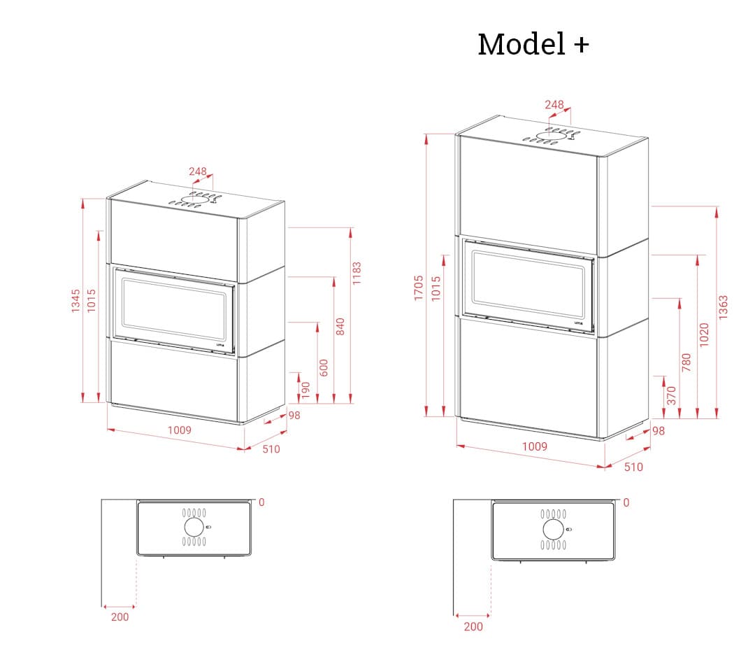 Если вы выберете эту версию Beto, вы можете дополнительно нарастить 40 см в высоту печи за счет дополнительной секции.