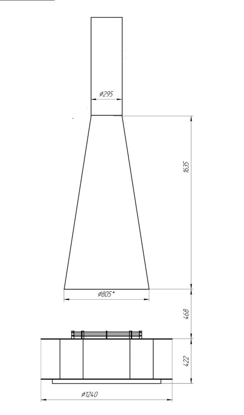 | Ширина | топки: 717 ммоснования: 1240 мм (диаметр) |