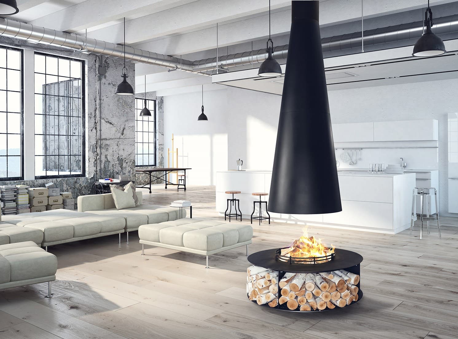 Центральный подвесной камин LOFT - 07 - это открытый камин на дровах оригинального дизайна.