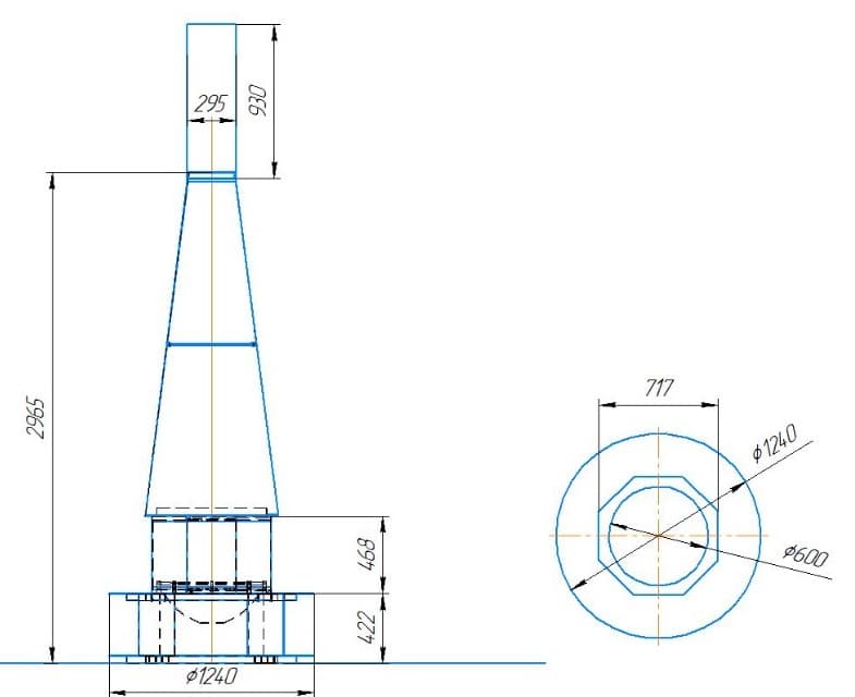 | Ширина | топки: 717 ммоснования: 1240 мм (диаметр) |