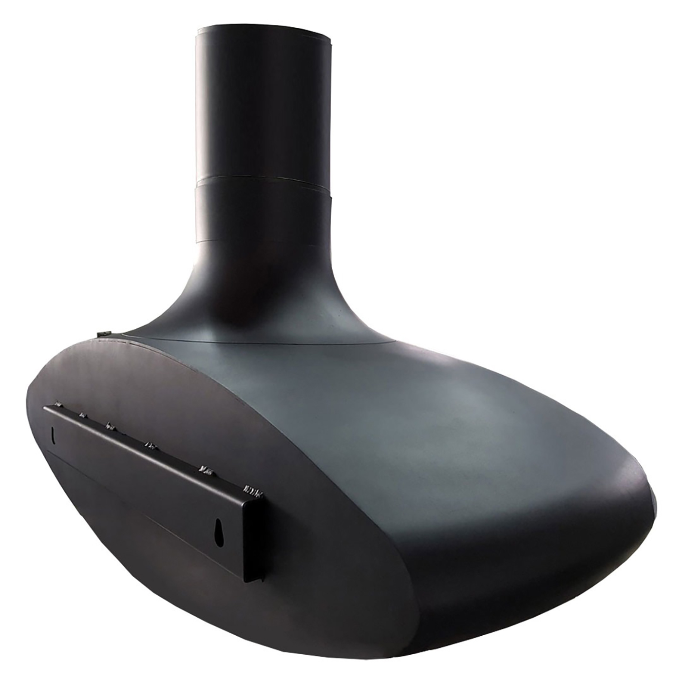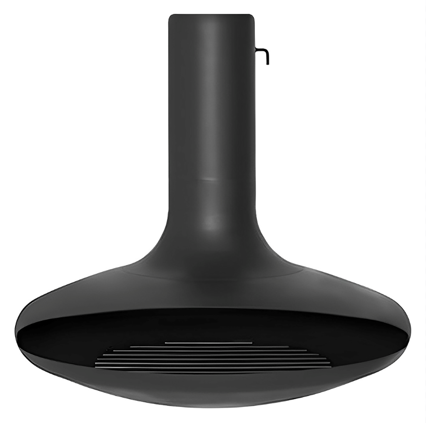 Эта модель подвешивается к потолку. В комплект входит дымоход из нержавейки длиной 3м с шиберной заслонкой.