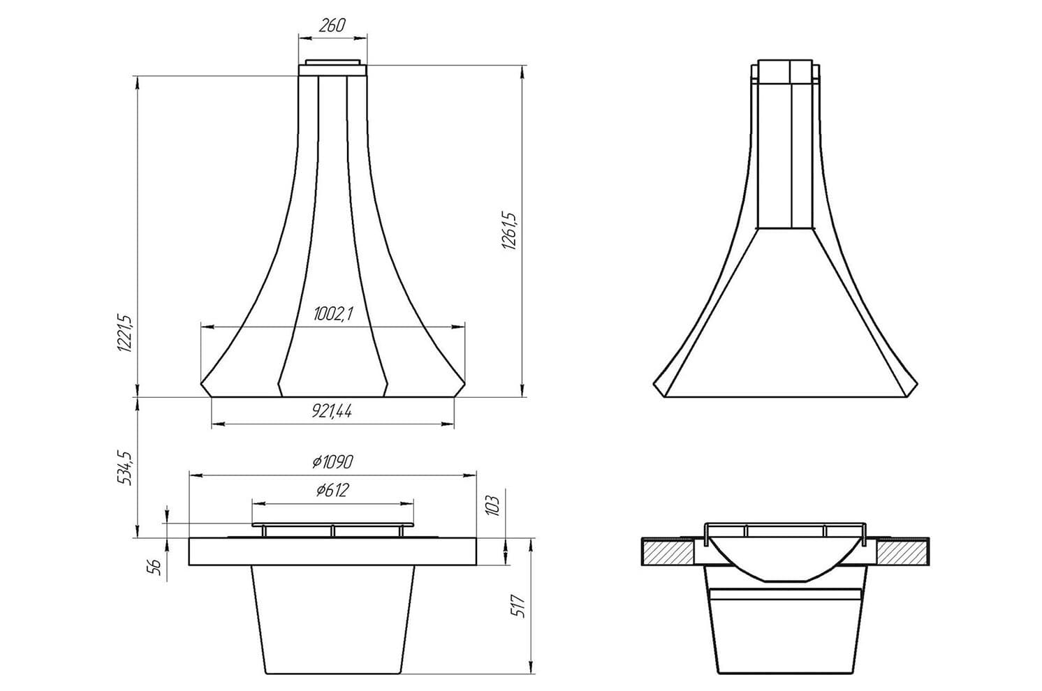| Диаметр | основания: 1090 ммкупола: 1002 ммограждения: 612 мм |