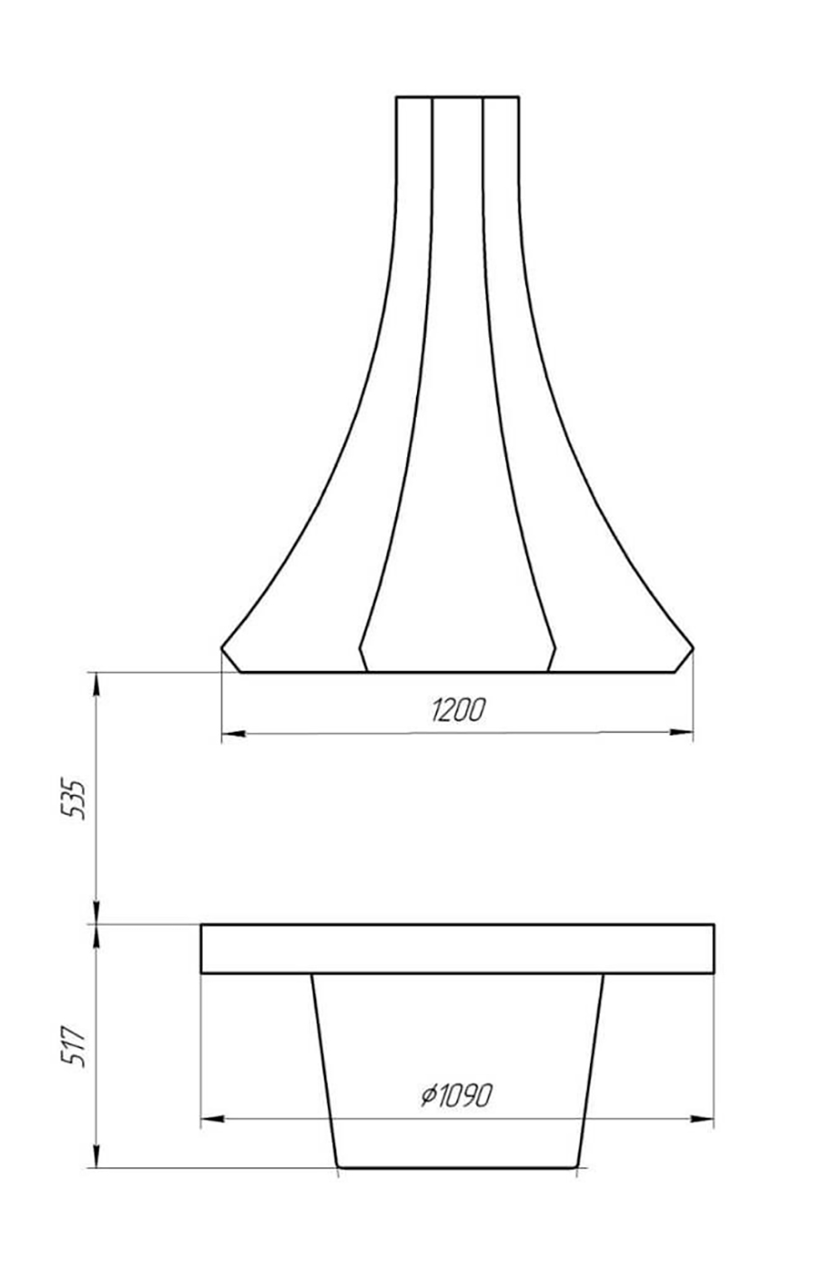 | Диаметр | основания: 1090 ммкупола: 1002 ммограждения: 612 мм |
