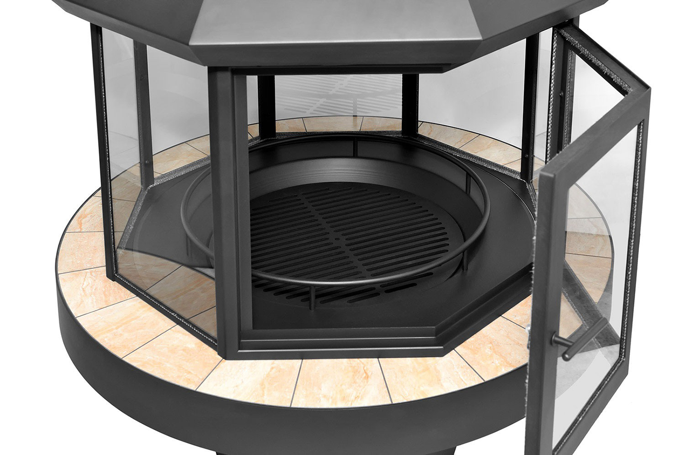 Можно заказать черную плитку на поверхность очага. Стоимость при этом не изменится.