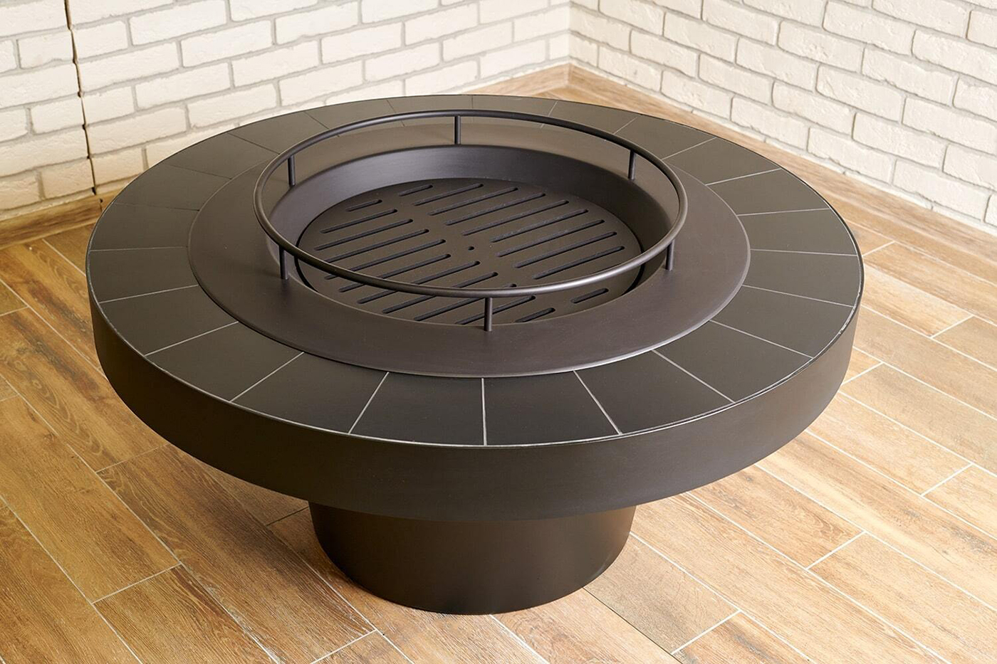 Можно заказать черную плитку на поверхность очага. Стоимость при этом не изменится.