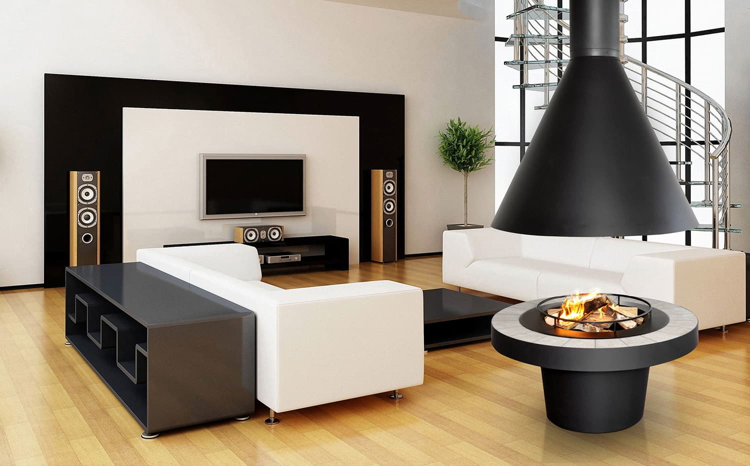 Камин LOFT - 02 - центральный островной камин на дровах. Он станет центром внимания в вашем доме.