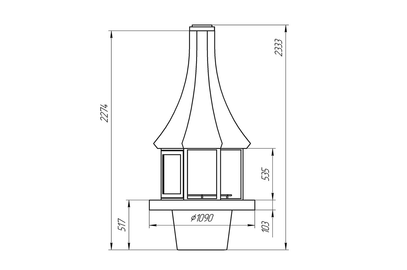 | Диаметр | основания: 1090 ммкупола: 1002 ммограждения: 612 мм |