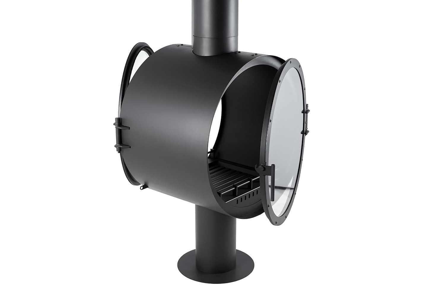 Островной камин LOFT - 30 на дровах с двумя дверцами.