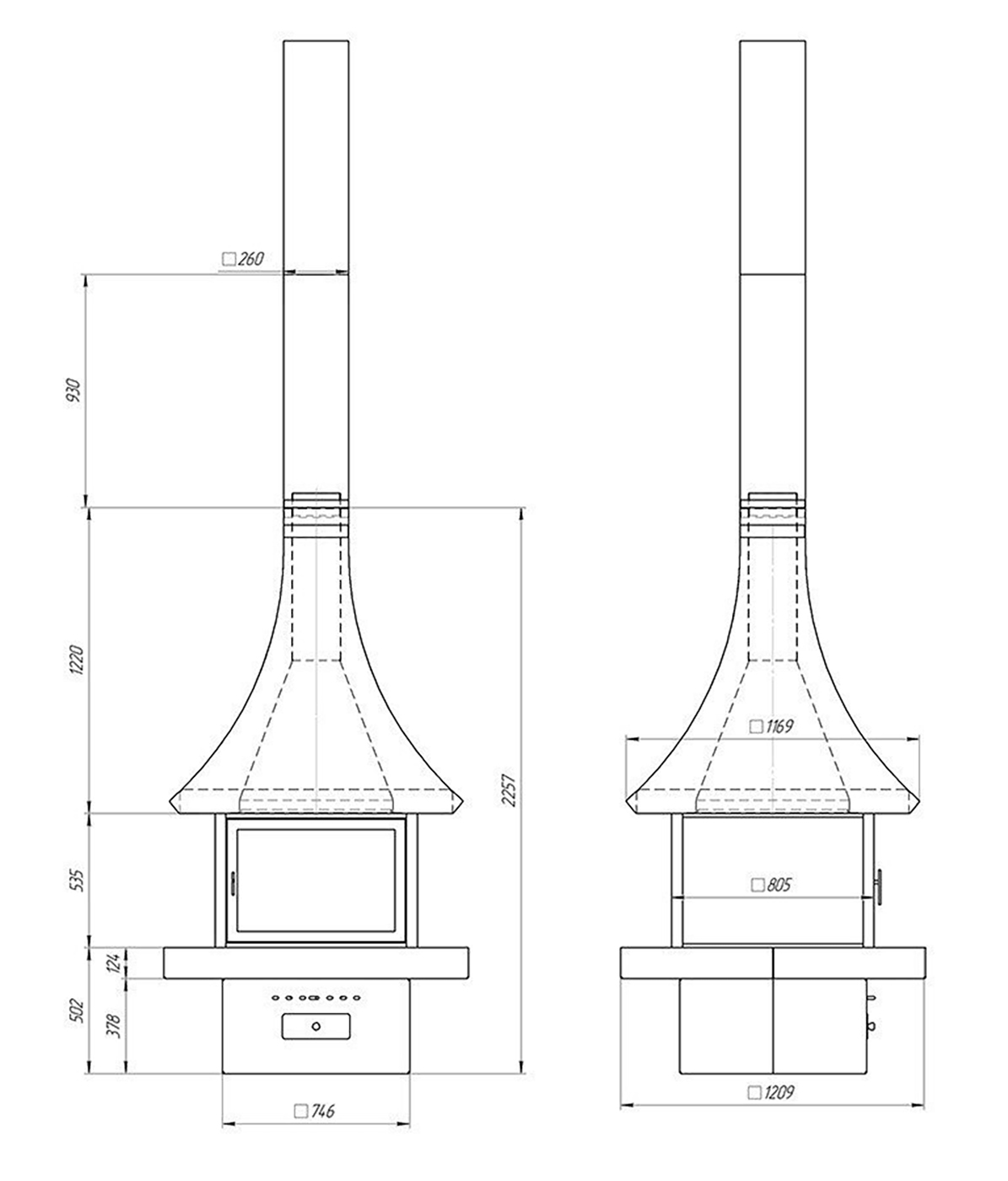 Камин LOFT - 05/1 - модификация камина LOFT-05 с закрытой огнеупорным стеклом топкой.