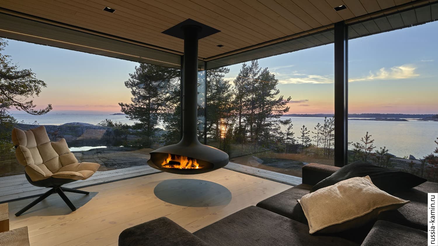 Благодаря уникальной вращающейся на 360" топке можно наблюдать игру пламени в камине с любой точки комнаты.