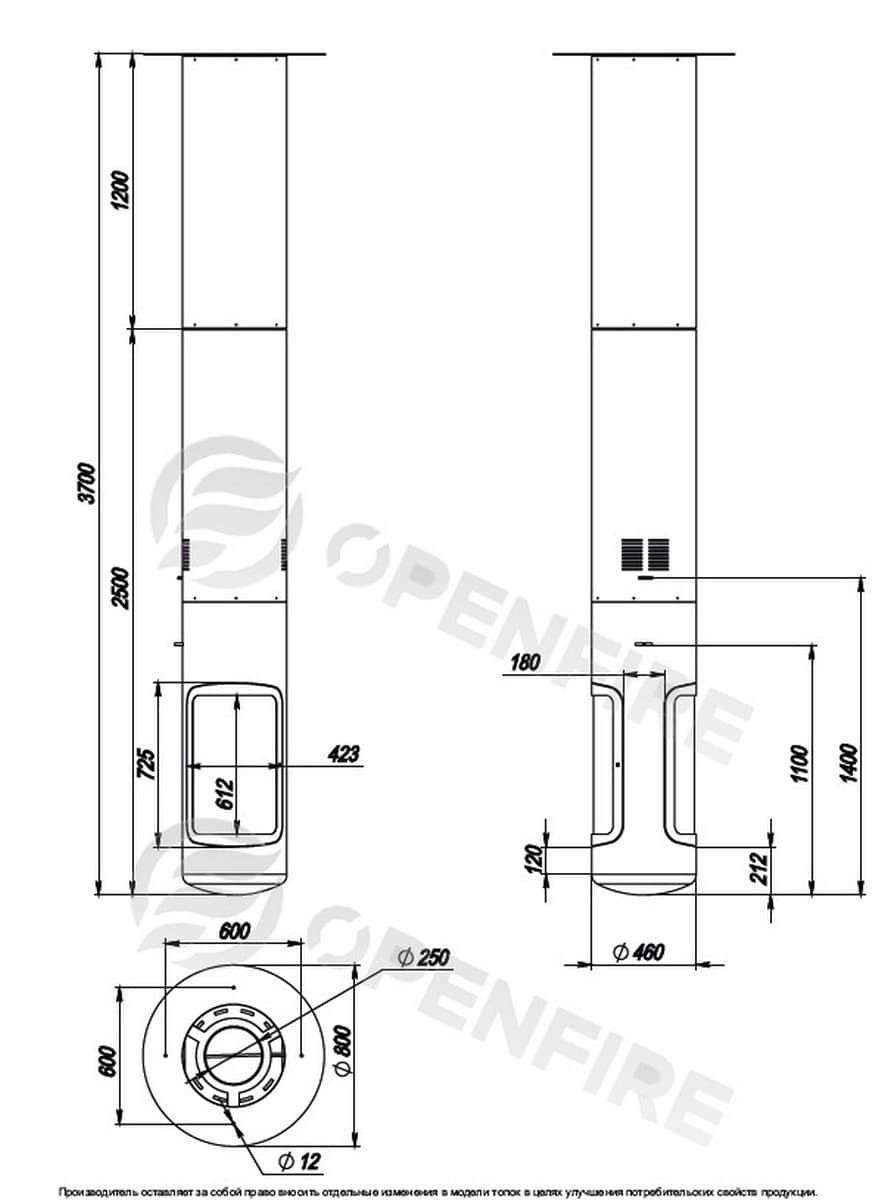 | Диаметр дымохода | 39 см |