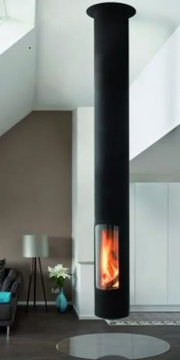 Подвесной камин оснащен одной дверкой, но двумя стеклами с небольшим закруглением, которое позволит наслаждаться горением огня практически из любой точки вашего помещения. Аккуратные и элегантные формы камина занимаю мало места,что позволяет разместить его в любом помещении.