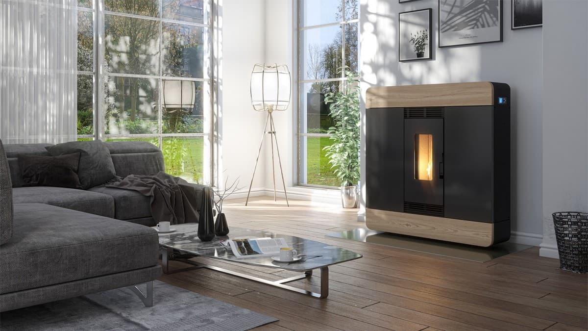 Печь прекрасно выглядит в современноминтерьере и имеет отличную продуктивность. Печь имеетвстроенный контейнер и удобное управление. Устройство оборудованосенсорной панелью, на которой установлен режим работы. Контроллер имеетинтуитивное меню, поэтому управление устройством очень простое.