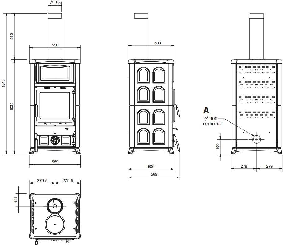 - Абсолютная герметичность дверцы: оборудование оснащено герметичной дверцей топочной камеры из высококачественного чугуна.