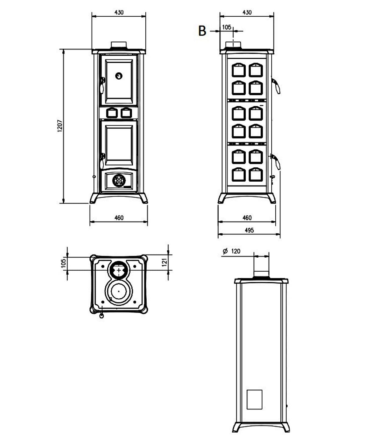 Печь Gemma Forno имеет привлекательныйдизайн, недорогая цена делает ее достойным выбором дляотопления дачи или загородного дома. Выпускается в трех вариантах цвета - бежевый, бордовый и серый.